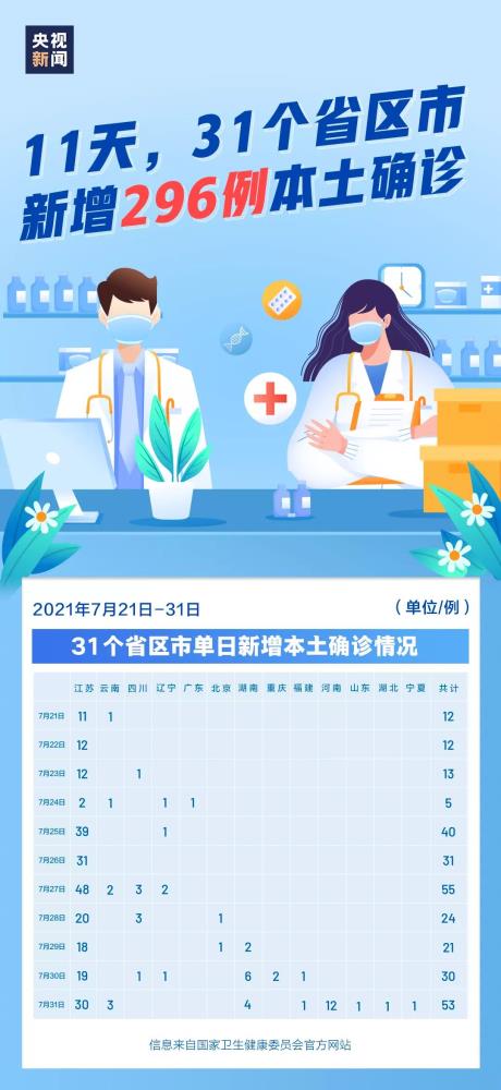近日,全國多地發(fā)生疫情。僅僅7月21日至7月31日的11天內(nèi),31個省區(qū)市(含兵團)就已新增...