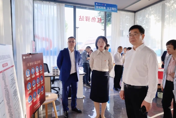 在和平國際醫(yī)院院長薛志輝、黨委書記盧瓊的介紹下,何學(xué)考一行先后參觀了醫(yī)院醫(yī)務(wù)社工服務(wù)點、文化墻、黨建長廊及紅色驛站,詳細了解醫(yī)院發(fā)展現(xiàn)狀、“兩新黨建”工作成效,并對醫(yī)務(wù)社工部“五位一體”新模式的開展情況重點調(diào)研。作為溫州首家社會辦醫(yī)機構(gòu)的醫(yī)務(wù)社工部,和平國際醫(yī)院醫(yī)務(wù)社工部自今年七月成立以來,積極探索“醫(yī)院+社區(qū)+社工機構(gòu)+慈善基金組織+志愿者隊伍”的“五位一體”協(xié)同模式,推進“院內(nèi)+院外+社會”大聯(lián)動,以專業(yè)社工服務(wù)為醫(yī)療融入人文關(guān)懷,改善患者就醫(yī)體驗,患者滿意度從80%提升到98%,今年累計開展“紅悅工程”醫(yī)療服務(wù)43場、惠及群眾1935人次。