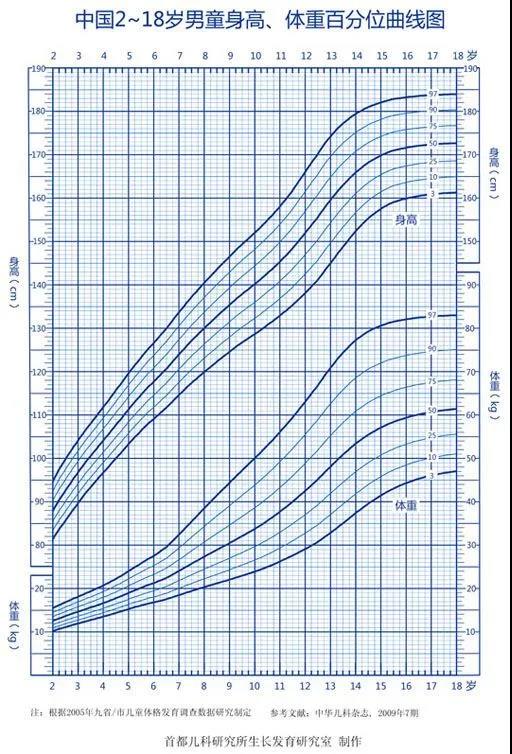 生長曲線就是一張網(wǎng)和七條曲線。網(wǎng)的橫軸是孩子的年齡,縱軸是代表孩子的體重或身高(分為體重、身高兩張表)。