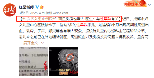 近年來,醫(yī)學(xué)研究表明,有些性早熟是腫瘤疾病的先兆表現(xiàn)。其中在男孩性早熟的原因中,患腫瘤的概率高于女孩。