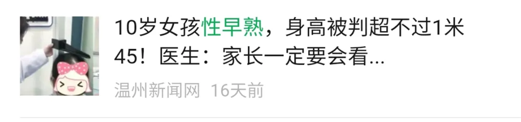 當(dāng)孩子過早地開始發(fā)育時(shí),身體中的性激素會使骨骼成熟加快,使骨骺端提前閉合,骨齡持續(xù)性超前。使得孩子在后期的生長發(fā)育過程中身高增長緩慢,至成年時(shí)期大多矮于常人。