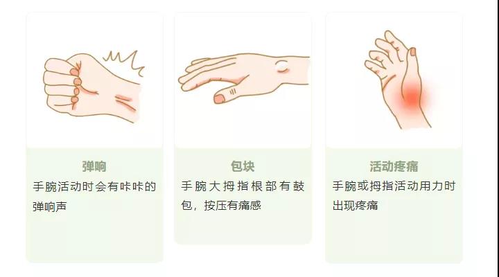 大拇指與腕關節(jié)活動時常常有輕微的彈響聲。