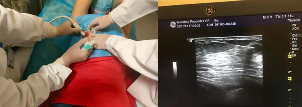 然后,完善頸部超聲檢查,以明確腫物是否在甲狀腺內(nèi),并判斷結(jié)節(jié)的形態(tài)、大小、數(shù)目、囊實(shí)性、血流情況、結(jié)節(jié)與周邊組織的關(guān)系,以及頸部淋巴結(jié)的腫大情況。必要時(shí)需要在超聲引導(dǎo)下甲狀腺細(xì)針穿刺活檢以判別結(jié)節(jié)的良惡性。
