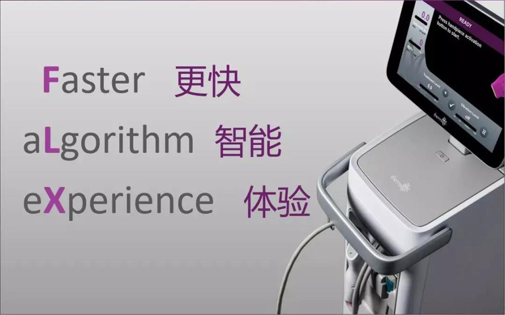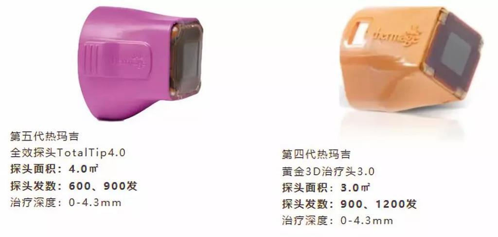 更快這一點(diǎn)其實(shí)和治療頭緊密相關(guān)。和第四代的黃金探頭一樣,都是可以達(dá)到皮下的4.3mm,只不過現(xiàn)在的治療頭面積比以前的大33%,變大了之后就加快了整個治療的速度,縮短了治療時間。