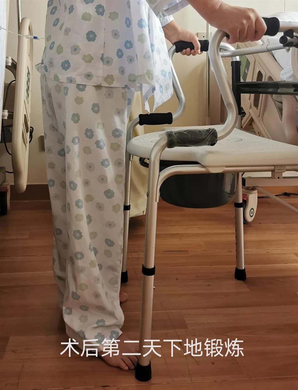 手術(shù)很成功!李女士術(shù)后第二天便可下地進行簡單的鍛煉了。 (△李女士術(shù)后第二天下床鍛煉)