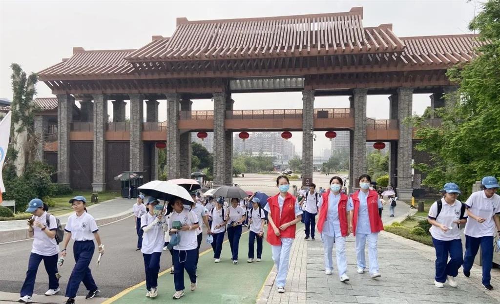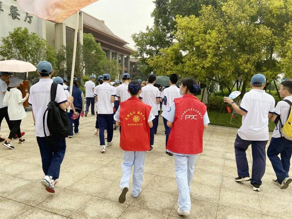 5月份的溫州,天氣陰晴不定,一場說來就來的陣雨,絲毫沒有影響學生們前進的步伐,在清一色的校服中,身穿紅色志愿者服的白衣天使們也為本次毅行活動添上了艷麗的一筆。