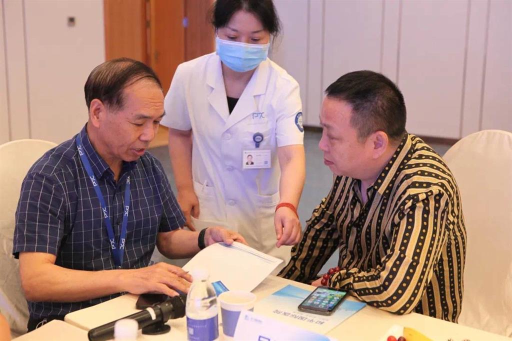 在活動現(xiàn)場,溫州和平國際醫(yī)院院長顧問、主任醫(yī)師、大內(nèi)科主任張懷勤教授也來到現(xiàn)場,與僑胞企業(yè)家面對面交流,企業(yè)家們紛紛拿出早已準(zhǔn)備好的病例報告單、影像片進(jìn)行咨詢。