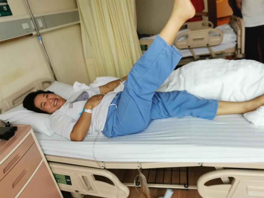 (患者術(shù)后向攝影師開(kāi)心地展示能夠活動(dòng)自如的右腿)