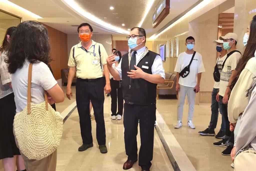 醫(yī)院首席醫(yī)療品質(zhì)官應(yīng)純哲、院長助理林進(jìn)聰來自臺灣,在他們的帶領(lǐng)下,同學(xué)們分別參觀了體檢與健康管理中心、整形美容中心等科室,不時用閩南語相互交流。