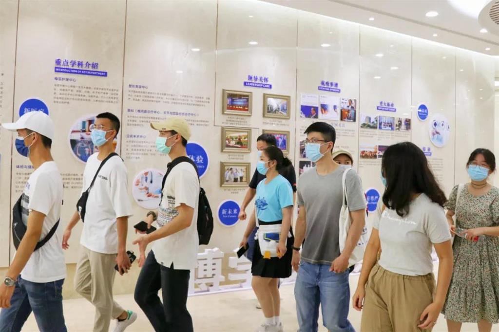 7月14日上午,2021兩岸青年醫(yī)學(xué)人文研習(xí)營的30多名臺灣大學(xué)生們來到和平國際醫(yī)院進(jìn)行參觀。