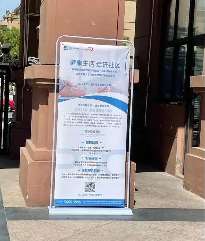 7月17日的義診活動(dòng)主要服務(wù)對(duì)象,為前林家園和楠榕大廈小區(qū)的業(yè)主們,義診團(tuán)隊(duì)為了更好的觸達(dá)服務(wù)對(duì)象,也為了能夠幫助到更多的問診者,于是在7月16日,便早早在義診地點(diǎn)擺放了“義診公告”的展架。