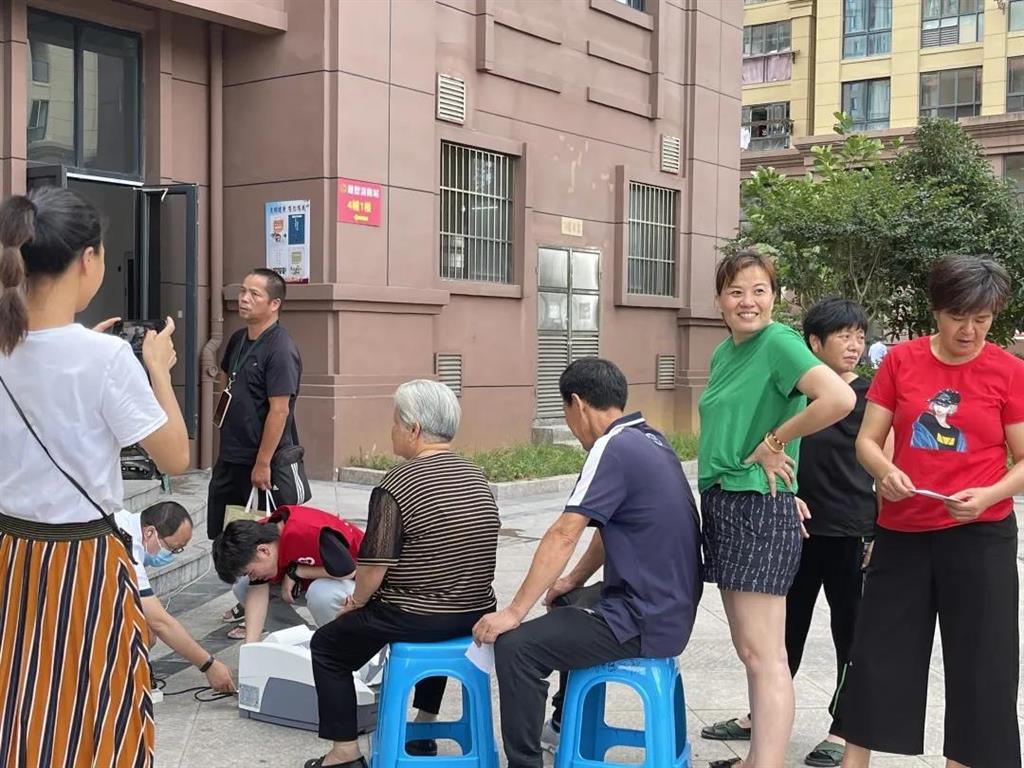 義診團(tuán)隊(duì)剛抵達(dá)不久,小區(qū)的業(yè)主們便聞?dòng)嵍鴣恚ㄋ﹤兓騼蓛山Y(jié)伴,或三五成群,帶著孩子一起前來問診檢查。
