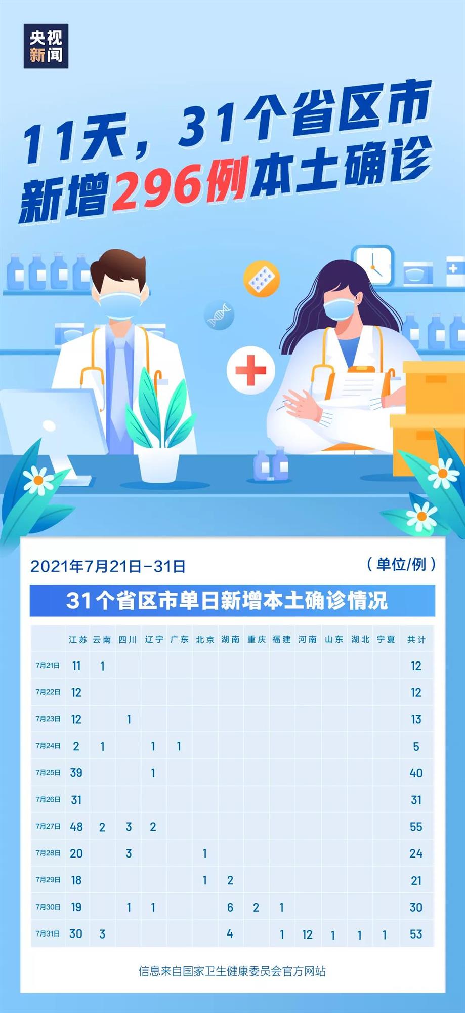 近日,全國多地發(fā)生疫情。僅僅7月21日至7月31日的11天內(nèi),31個(gè)省區(qū)市(含兵團(tuán))就已新增296例本土確診病例。