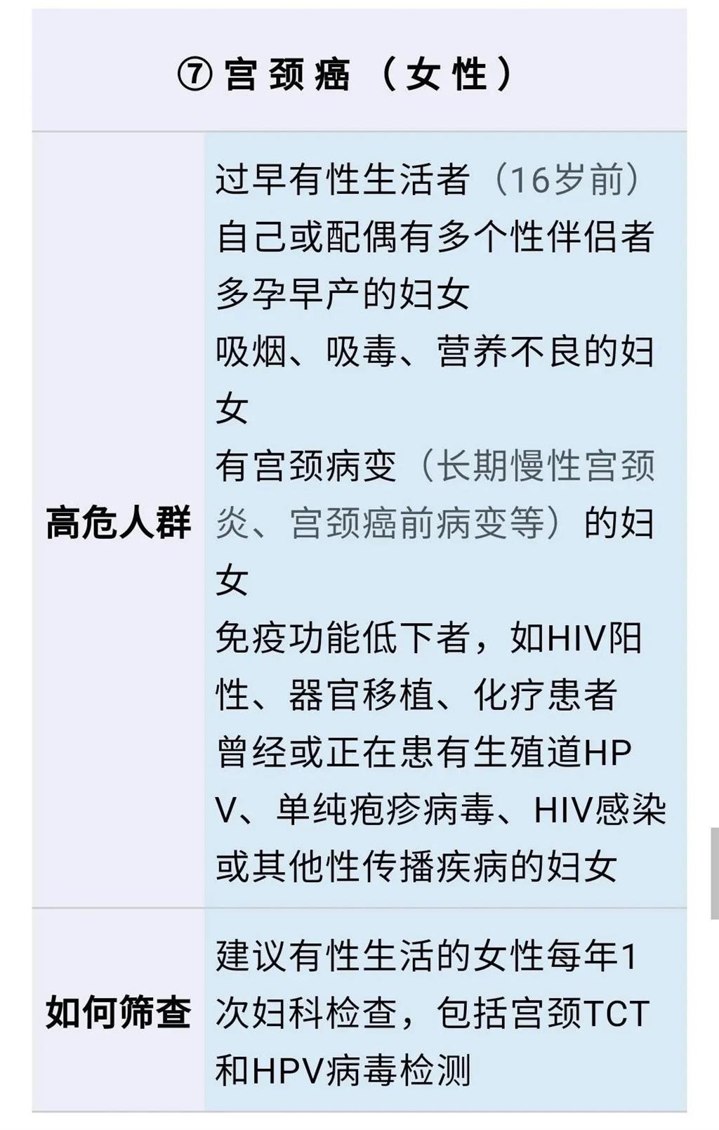 不過,癌癥大概有200多種,不可能做到每種都防。所以小編建議大家重點(diǎn)關(guān)注我國(guó)發(fā)病率最高的8種癌癥,即:肺癌、乳腺癌、結(jié)直腸癌、胃癌、肝癌、食管癌、宮頸癌、前列腺癌。(特別是前6種,占我國(guó)所有癌癥發(fā)病和死亡率的80%) 8大癌癥的高危人群和篩查方式,可以對(duì)照表格: