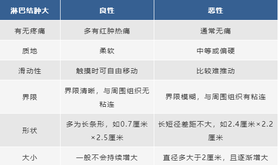 除了有無痛感外,淋巴結的滑動性、質地、與周圍組織的界限等,也是判斷其性質的重要依據(jù):